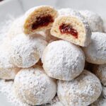 These Filled Almond Snowball Cookies are buttery, tender delights with a delicious almond flavor and a sweet raspberry jam center. Coated in powdered sugar, they offer a perfect balance of nutty and fruity tastes, making them an irresistible treat for any occasion.
