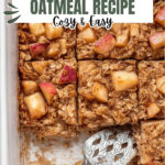 - Assemble: Pour the oatmeal mixture into the prepared baking dish, spreading it evenly. Top the mixture with the remaining ¼ cup of diced apples for garnish and extra texture.