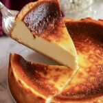 A rich and creamy Basque Cheesecake with a caramelized top and silky interior, perfect for dessert lovers seeking a rustic yet impressive treat.