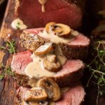 This Beef Tenderloin with Creamy Mushroom Sauce recipe features a succulent, center-cut beef tenderloin seared to perfection and roasted to medium rare. The tender meat is complemented by a rich, creamy mushroom sauce infused with marsala wine and fresh thyme, making it a perfect elegant main course for special occasions or a refined dinner.