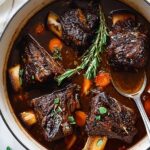 This Braised Short Ribs recipe delivers tender, fall-apart beef in the best rich sauce made with bacon, red wine, and aromatic vegetables. Perfect for a comforting meal served over mashed potatoes, it's a classic slow-cooked dish with deep flavors enhanced by fresh herbs and a hearty braising liquid.