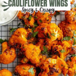 Bake the cauliflower wings on the middle oven rack at 375°F for 20 minutes. Then, carefully flip each floret over using tongs or a spatula, and bake for an additional 20 minutes. When done, they should be golden brown and crispy — the classic wing texture you’re aiming for without frying.