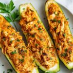 Buffalo Chicken Zucchini Boats are a flavorful, low-carb dish featuring tender zucchini filled with a spicy buffalo chicken mixture. This recipe combines shredded chicken, paleo mayo, and hot sauce with aromatic spices, then bakes until bubbly and slightly browned, perfect for a satisfying and healthy meal.