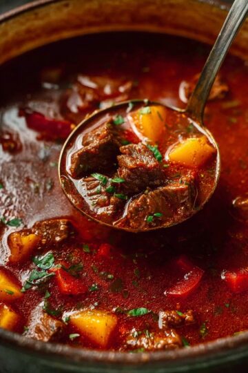 Hearty Vegetable Beef Soup with Guinness and Mushrooms Recipe