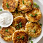 I love serving these fritters with a garlic aioli, tzatziki, or a spicy sriracha mayo. Even a simple lemon yogurt sauce or your favorite chutney works beautifully and adds a fresh contrast.