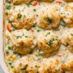 This Cheddar Biscuit Chicken Pot Pie Casserole is a creamy and comforting twist on a classic chicken pot pie. Featuring a savory chicken and vegetable filling topped with quick and easy cheddar drop biscuits, this casserole is perfect for a satisfying weeknight dinner ready in 40 minutes.