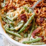 - Add Toppings and Finish Baking: Remove casserole from the oven, sprinkle the remaining bacon and French fried onions evenly on top. Return the dish to the oven and bake for an additional 5 minutes or until the onion topping is golden brown and crispy.