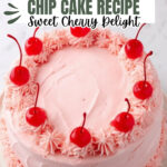 Cherry Chip Cake is a delightful white cake enhanced with chopped maraschino cherries and cherry juice for a burst of fruity flavor. Topped with a creamy cherry buttercream frosting and garnished with whole cherries, this cake is perfect for celebrations or any sweet treat occasion.