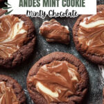 Deliciously rich Chocolate Andes Mint Cookies featuring a tender cocoa dough studded with chopped Andes mints and topped with a melted whole Andes mint for a perfect sweet and minty treat.