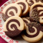 These classic Pinwheel Cookies feature a swirl of vanilla and chocolate dough, creating an eye-catching design and delightful flavor combination. Perfectly buttery and tender, they’re rolled into logs, chilled, sliced, and baked for charming, delicious treats that can be dipped in chocolate and decorated with sprinkles for extra flair.