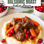 This Christmas Cranberry Balsamic Roast is a festive and flavorful beef roast braised to tender perfection in a rich sauce of balsamic vinegar, fresh cranberries, and aromatic herbs. The combination of sweet, tangy, and savory elements makes it a perfect holiday centerpiece, enhanced by a luscious thickened gravy. Featuring hearty carrots and onions, it’s easy to prepare in the oven or slow cooker for a comforting and elegant meal.