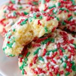 - Form and Coat Cookies: Roll the chilled dough into balls, then dip each ball in holiday sprinkles followed by rolling it completely in powdered sugar to coat evenly.