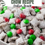 Christmas Puppy Chow is a festive, sweet treat made with chocolate, peanut butter, and Chex cereal, coated in powdered sugar and sprinkled with holiday M&M's. Perfect for sharing at holiday parties or enjoying as a seasonal snack.