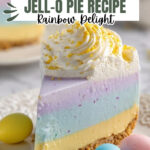 A colorful and festive Easter Jello-O Pie featuring four layers of vibrant Jell-O flavors set in a buttery graham cracker crust, topped with whipped cream for a creamy finish. This no-bake dessert is perfect for spring celebrations and family gatherings.
