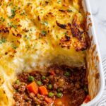 - Assemble and bake: Transfer the beef filling evenly into a 9×13 inch baking dish. Spread the mashed potatoes over the filling and use a fork or spoon to create a rustic texture. Brush the top gently with melted butter. Bake uncovered in the preheated oven at 400 degrees Fahrenheit for 25 minutes. Then, broil for 3 minutes until the mashed potatoes are golden brown. Let cool for 15 minutes before serving. Garnish with chopped parsley.
