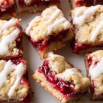 These Cranberry Crumble Bars feature a buttery shortbread crust topped with a tart and sweet cranberry filling, finished with a luscious vanilla glaze. Perfect for holiday gatherings or a delicious seasonal treat.