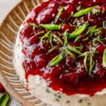A vibrant and festive 10-minute cranberry jalapeño dip combining creamy dairy-free cream cheese with spicy jalapeños, tangy lime, and sweet cranberry sauce, perfect for holiday parties and gatherings.