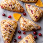 These Glazed Cranberry Orange Scones are a delightful combination of tart cranberries and bright orange zest, baked into tender, flaky scones with a sweet and tangy orange glaze. Perfect for breakfast or an afternoon treat, they feature a buttery texture enhanced by frozen cranberries and a refreshing citrus glaze.