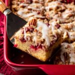 This Cranberry Pecan Cake features a moist and tender crumb loaded with fresh cranberries and crunchy pecans, topped with a buttery cinnamon crumb topping. An optional smooth vanilla icing drizzles over for an extra touch of sweetness, making it perfect for holiday gatherings or cozy dessert indulgence.