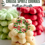Delightfully tender and buttery Cream Cheese Spritz Cookies featuring a hint of orange zest, perfect for holidays or any special occasion. These cookies are made with a blend of cream cheese and butter for a rich texture and piped into charming shapes, decorated with colorful sugars or sprinkles.
