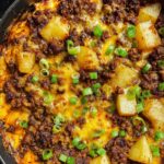 This Beefy Potato Taco Casserole is a hearty and creamy crockpot recipe perfect for an easy and comforting meal. Ground beef is simmered with salsa and taco seasoning, then combined with potatoes, onions, and creamy cheeses to create a cheesy, flavorful casserole that cooks hands-free in the slow cooker. Topped with fresh green onions, it’s a satisfying dish ideal for busy nights.