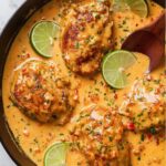 - Combine Chicken and Sauce: Return chicken to the skillet, spoon sauce over the pieces and simmer uncovered for 4 minutes. Add lime wedges and simmer for another 1 minute, then remove from heat.