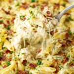 This Chicken Bacon Ranch Pasta is a comforting, creamy casserole loaded with shredded chicken, crispy bacon, and a flavorful ranch seasoning mix. Penne pasta combines with a rich sauce made from cream of chicken soup, sour cream, and mozzarella cheese, then baked to bubbly perfection with a golden cheesy top. Perfect for a hearty family meal or easy weeknight dinner.