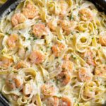 - Combine Shrimp: Return cooked shrimp to the skillet with pasta and sauce. Toss gently and allow to heat through for about 1 minute. Remove from heat.