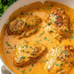 Marry Me Chicken is a creamy, flavorful skillet chicken dish featuring a rich sauce made with chicken broth, white wine, sundried tomatoes, and Parmesan cheese. The chicken is seared to a golden crust and simmered in a luscious sauce that combines garlic, tomato paste, cream cheese, and aromatic herbs, perfect for an indulgent weeknight dinner or special occasion.
