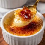 Classic French crème brûlée with a rich, velvety vanilla custard base topped with a perfectly caramelized sugar crust. This easy-to-make dessert is baked in a water bath for a smooth texture and finished with a crackling brûlée topping.