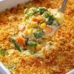 This comforting Vegetable Casserole features a creamy blend of mushrooms, cheddar cheese, and a medley of vegetables baked to perfection with a crunchy Ritz cracker topping. It's a hearty and flavorful dish that is perfect as a wholesome side or a vegetarian main course.