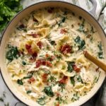 This creamy White Lasagna Soup is a comforting and hearty dish that combines tender shredded chicken, spinach, sun-dried tomatoes, and a cheesy broth reminiscent of classic lasagna flavors. Made with a blend of half-and-half and cornstarch for a luscious texture, it's perfect for an easy weeknight dinner.