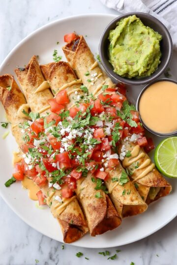 For a well-rounded snack or appetizer plate, pair your taquitos with Mexican street corn salad, a fresh pico de gallo, or simple Mexican rice. A side of black beans or refried beans works wonders too, adding hearty balance to the crispy bites.