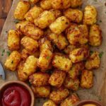 - Serve Immediately: Remove the air-fried cheesy tater tots from the basket and serve hot as a delicious appetizer or snack.