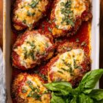 - Garnish and Serve: Sprinkle chopped fresh basil over the chicken parmesan and serve immediately.