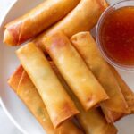 These crispy spring rolls feature a flavorful ground chicken and shiitake mushroom filling wrapped in thin, crispy flour-based wrappers. Fried to golden perfection and served with a delightful sweet and tangy dipping sauce, they make an irresistible appetizer or snack that’s perfect for any occasion.