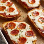 - Add Toppings: Remove the baking sheet from the oven. Spread pizza sauce over each slice, then sprinkle the shredded mozzarella cheese, and arrange pepperoni slices or your preferred toppings on top.