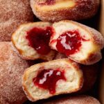 These classic jelly-filled donuts are fluffy, sweet, and perfectly fried to golden perfection with a soft interior filled with luscious raspberry jelly. Made with a tangzhong method for extra softness, these donuts are rolled in granulated sugar and filled just before serving, making them an irresistible breakfast or brunch treat.