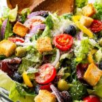 This Olive Garden Salad recipe recreates the fresh, crisp flavors of the popular restaurant salad with a vibrant blend of lettuce, red cabbage, carrots, olives, tomatoes, pepperoncini, croutons, and Parmesan cheese, paired with a zesty Italian dressing made from scratch. Perfect as a refreshing side or a light meal, it brings a homemade touch to a classic favorite.