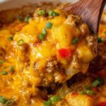 This hearty Crockpot Beefy Potato Taco Casserole combines seasoned ground beef, tender diced potatoes, and a creamy cheddar cheese sauce with classic taco flavors. Slow-cooked to perfection, it’s an easy and comforting meal perfect for a satisfying dinner with a Mexican-inspired twist.