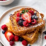 I tend to keep things simple but colorful—powdered sugar for a snow-dusted look, maple syrup for that classic sweet finish, and fresh berries like strawberries or blueberries. The tartness cuts through the richness and adds a lovely burst of freshness.