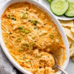 This Dairy-Free Healthy Buffalo Chicken Dip is a flavorful, low-carb, paleo, and keto-friendly appetizer perfect for game day or any gathering. Made with shredded chicken, paleo mayonnaise, hot sauce, and nutritional yeast, it is baked until bubbly and served warm with fresh vegetables or gluten-free crackers. A delicious dairy-free alternative to traditional buffalo chicken dips that is easy to prepare and adaptable to different dietary preferences.