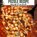 This Easy Chicken Pozole recipe features tender shredded chicken simmered in a flavorful broth with authentic red enchilada sauce, hominy, and traditional Mexican spices. Perfectly topped with fresh cabbage, lime, radishes, and cilantro, this comforting slow cooker pozole is a hearty and satisfying dish perfect for any occasion.