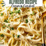 A creamy and easy Fettuccine Alfredo recipe featuring a rich homemade Alfredo sauce made with butter, garlic, heavy cream, milk, Parmesan cheese, and a blend of herbs and spices for a luscious, comforting pasta dish.