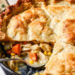 This Turkey Pot Pie features a flaky homemade crust filled with a savory mix of shredded turkey, sweet potatoes, russet potatoes, carrots, corn, and green beans in a creamy, herb-infused sauce. Perfect for a comforting dinner, it’s baked to golden perfection in a single skillet for easy preparation and cleanup.