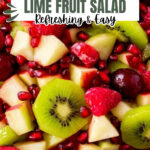 A vibrant and easy-to-make Christmas fruit salad featuring a fresh mix of apples, grapes, kiwis, pomegranate, and berries, lightly dressed with honey and lime juice for a perfect holiday side or snack.