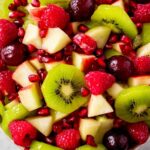 A vibrant and easy-to-make Christmas fruit salad featuring a fresh mix of apples, grapes, kiwis, pomegranate, and berries, lightly dressed with honey and lime juice for a perfect holiday side or snack.