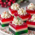 Christmas Ribbon Salad is a festive, colorful layered gelatin dessert featuring lime, lemon, and cherry Jell-O with a creamy marshmallow and pineapple middle layer. This refreshing and playful salad is perfect for holiday gatherings, offering a sweet, tangy, and slightly creamy texture in each bite.
