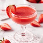 This Frosè recipe is a refreshing frozen rosé cocktail perfect for warm days, blending frozen strawberries, rosé wine, and a touch of sweetness to create a smooth, fruity drink that can be garnished with fresh strawberries.