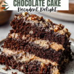 Traditional German Chocolate Cake featuring rich chocolate layers paired with a luscious coconut pecan frosting. This classic dessert combines moist cake with a creamy, nutty frosting, perfect for celebrations and family gatherings.